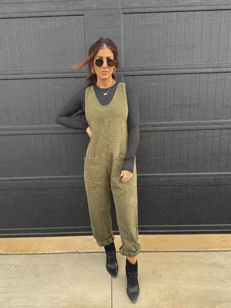 With a relaxed fit and a low scoop neckline, this denim jumpsuit will have you strutting in style. Plus, the harem-style legs and oversized patch pockets make it the perfect effortlessly chic outfit! Rock on!
