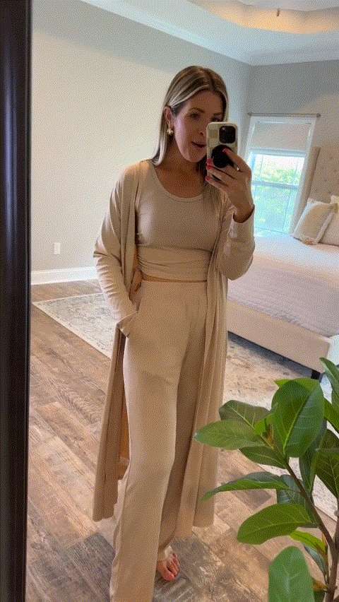 Stay stylish and comfortable with this three-piece lounge set that combines elegance and ease. Featuring a long open cardigan, a sleek sleeveless top, and relaxed-fit pants, this set is perfect for casual days out or cozy nights in. Mix and match the pieces to create versatile looks that exude laid-back sophistication.