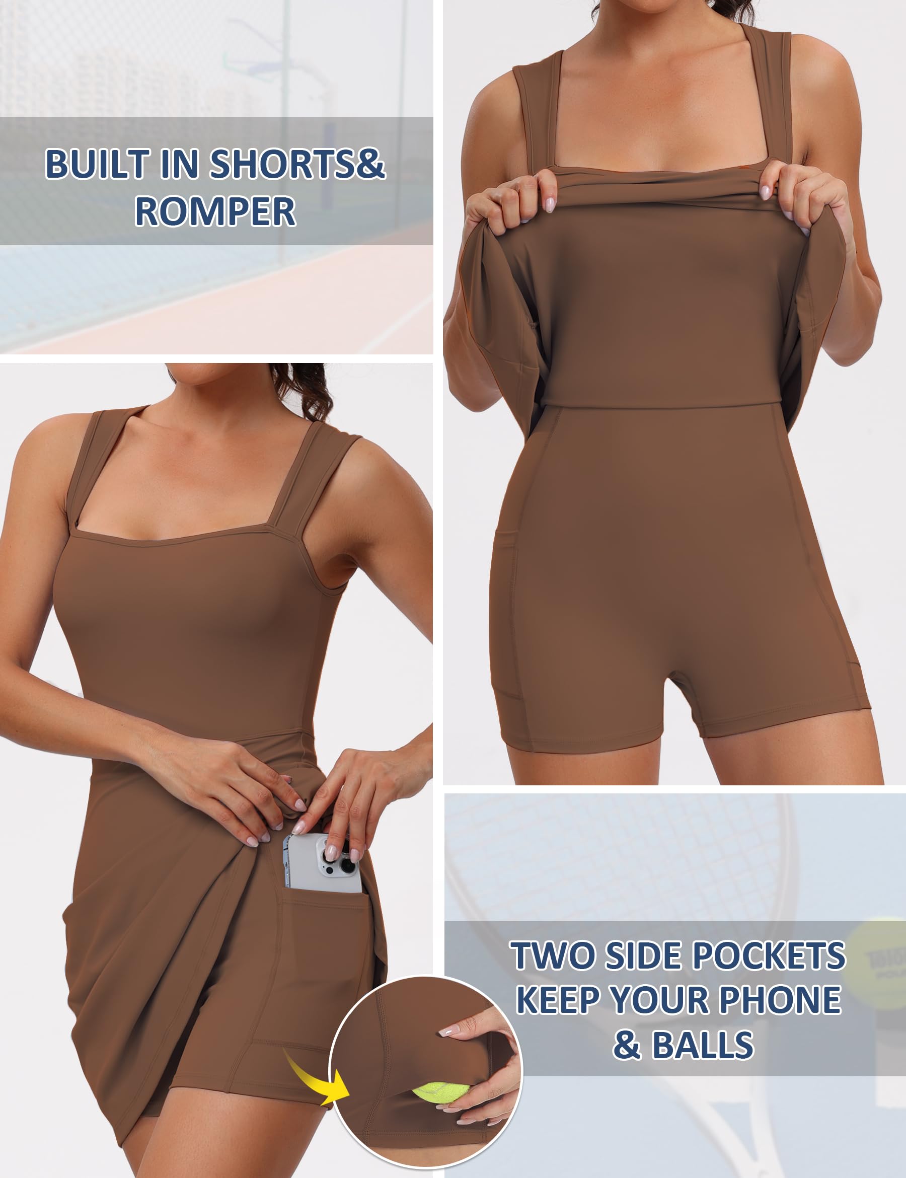 This workout tennis dress Built in tight cut mini shorts,overlaid with a slightly A lined skirt, for maximum coverage..Plus, two side pockets are added in undershorts are great for keeping your essentials within reach.