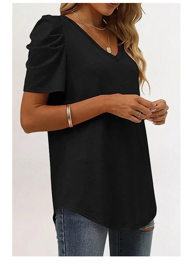 This solid color T-shirt adopts a unique puff sleeve design, which is both casual and fashionable. It is your best choice.
