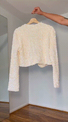 This jacket can be worn on both sides, it’s up to you to choose!Elevate your style with our stunning "Tie-Front Sequined Jacket." This jacket is the perfect blend of glamour and sophistication,making it a must-have addition to your wardrobe.