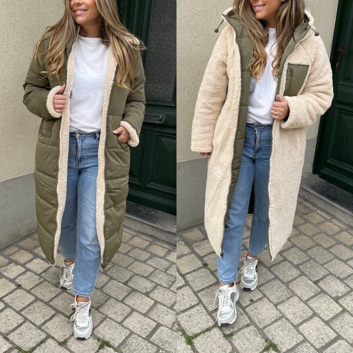 Imagine the winter wind blowing through you while you're fully protected and surrounded by luxurious warmth in a reversible Sherpa down jacket. This coat is more than just a winter coat; it's an experience, an expression of style and comfort that allows you to brave the colder seasons with confidence and grace.