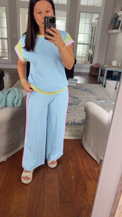 This lightweight outfit is both comfortable and stylish for various occasions. The material is buttery soft and very stretchy. The colors are so vibrant. This outfit is a versatile addition to your wardrobe.